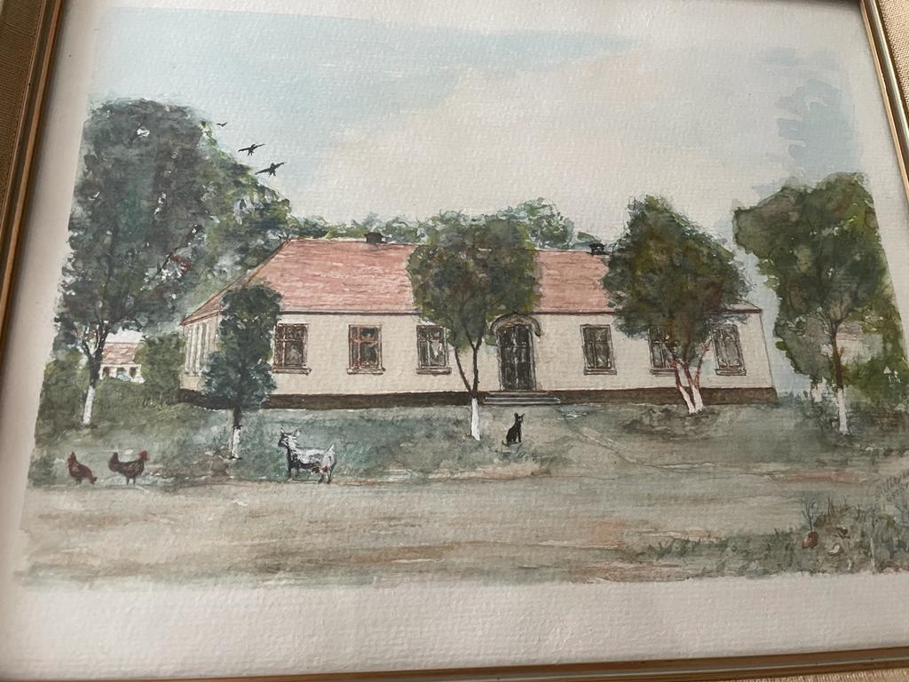 Das Gemälde zeigt die Schule von Katharinental, wie sie 1944 aussah. Gemalt haben soll es Albert Fütterer, der es später meinem Großvater geschenkt hat.